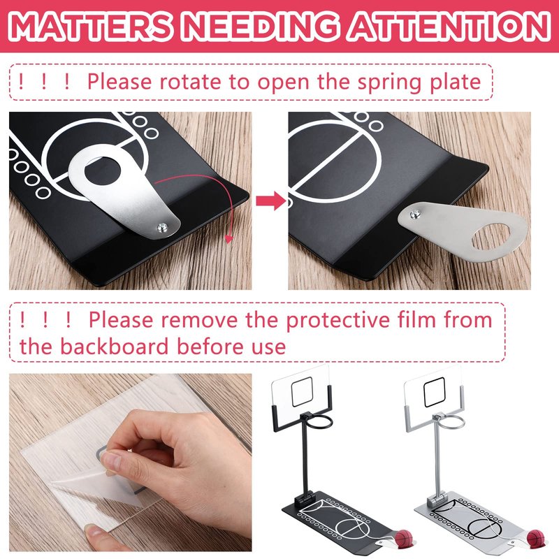 - Long Lasting: basketball desk toys have a metal weighted base with non slip pads, not easy to tip or slide, stable to use; Please tear off the transparent film on the plastic backboard before use