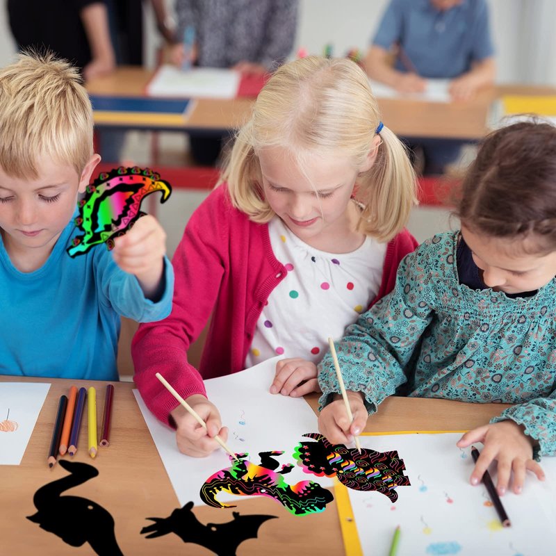 - Decorative But Practical: these dinosaur scratch card diy crafts are easy to use, just scrape the black film off the surface with a wooden stick to reveal a lovely rainbow of colors; You can use them to decorate your books or scrapbooks as you like