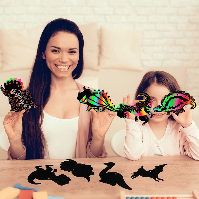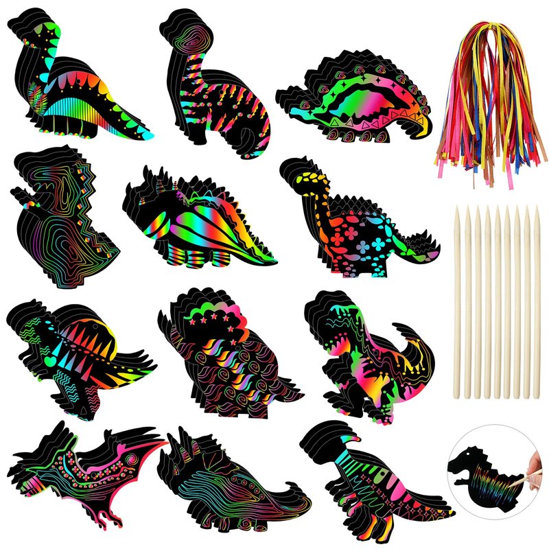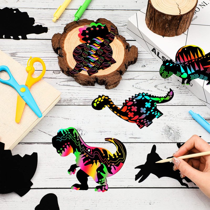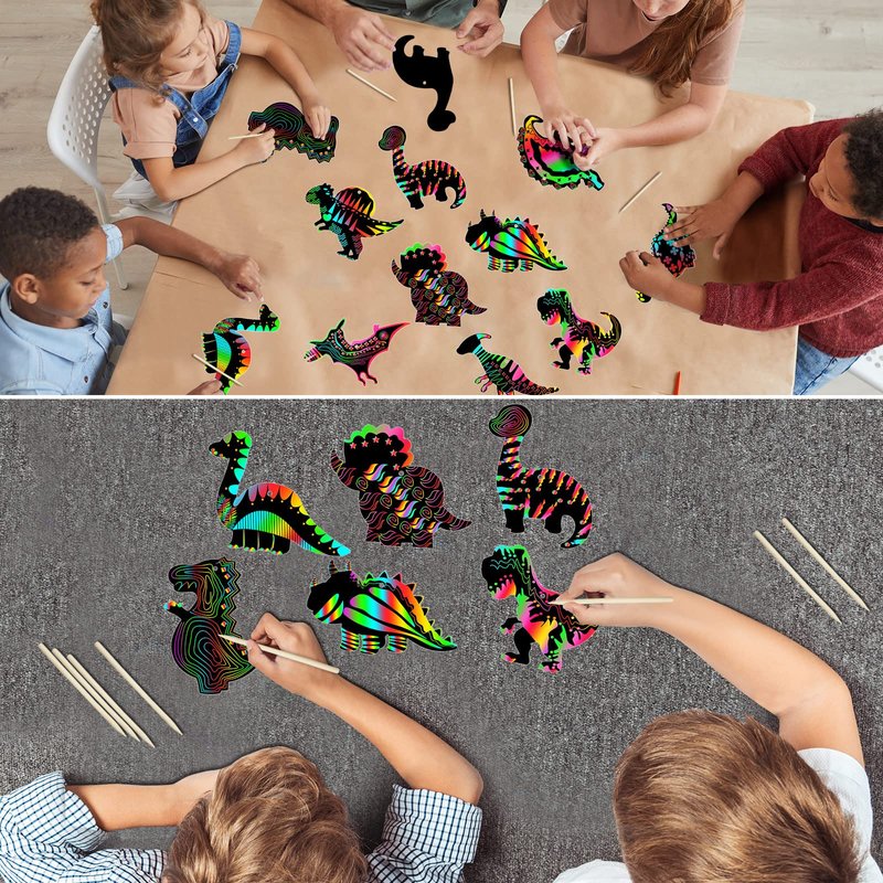 - Scope of Occasions: dinosaur scratch art set is suitable for most activities, these painting art supplies provide children with a creative activity that can be applied at family parties, classroom activities, extracurricular activities, or on camping trips for further learning and growth, bringing you a good experience