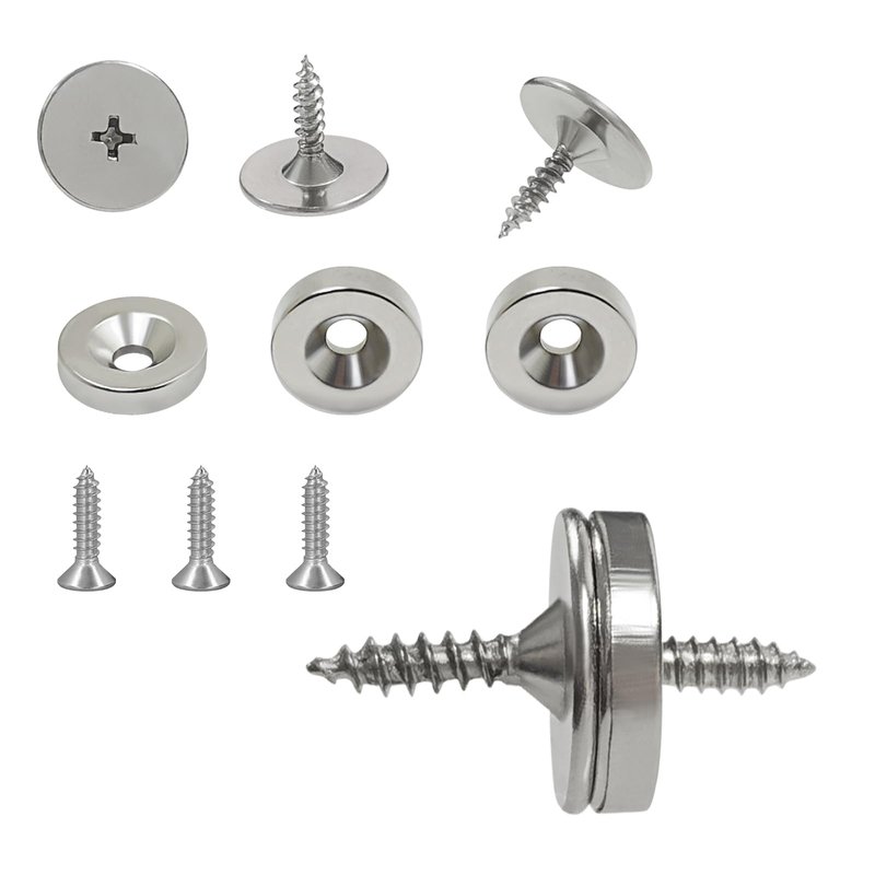 - Magnet size:outside diameter:15mm/0.59",inside diameter:4mm/0.15",thickness:2.5mm/0.09"; Catch plate size:diameter:16mm/0.62",height:13.5mm/0.53",thickness:1mm/0.03".