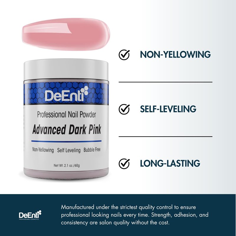 DeEnti Acrylic Nail Powder, 2oz Dark Pink Acrylic Powder Dip for Nails, Long Lasting Salon Quality, Bubble Free Professional Nail Powder for Manicure, Nail Art, Fake Nails, Nail Carving & Extensions