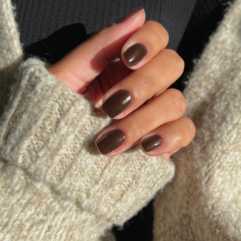 Deep Brown Press on Nails Short,KXAMELIE False Nails Short Square Nails Press ons,Acrylic Nails Glue on Nails Set,Stick on Nails for Women Fake Nails for Girls Daily Wear in 24PCS