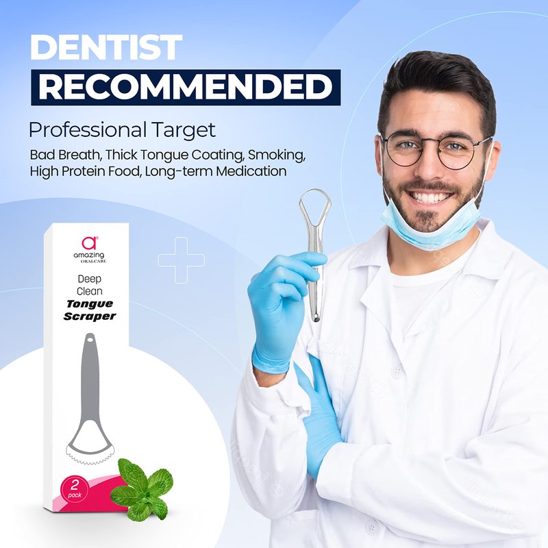 A group of dentists tried all different sizes and shapes of tongue scrapers available, and came up with this new design to make the job more effective. You want the best tongue scraper made of stainless steel with a serrated edge for maximum tongue scraping cleaning, now it's here! You deserve the BEST!
