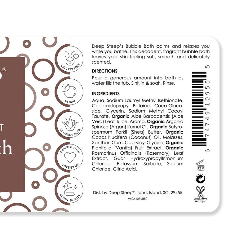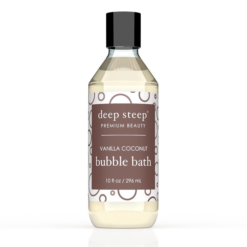 - Indulge in a lavish spa-like experience from the comfort of your own home with Deep Steep's Vanilla Coconut Bubble Bath, which emits a delightful and cozy aroma that fills your bathroom.