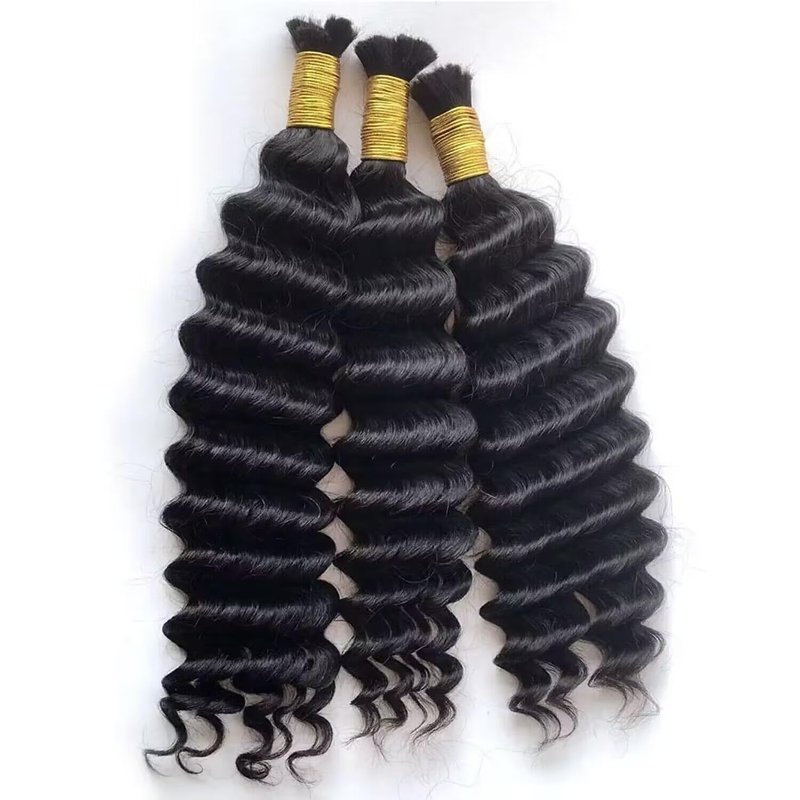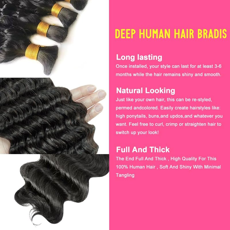 Deep Wave Bulk Human Hair For Braiding 100% Unprocessed Brazilian Virgin Human Hair Extensions No Weft 100g Micro Braiding Human Hair Extensions 100% Human Hair… (Natural Color, 22 Inch)