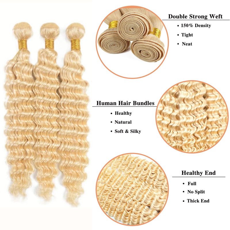 - 613 Human Hair Bundles Hair Feature: The Deep Wave Bundles Human Hair Blended Seamlessly With Natural Hair, And The Texture Matched Perfectly. Soft And Breathable, Natural Looking, More Realistic, It’s Like Your Own Hair.
