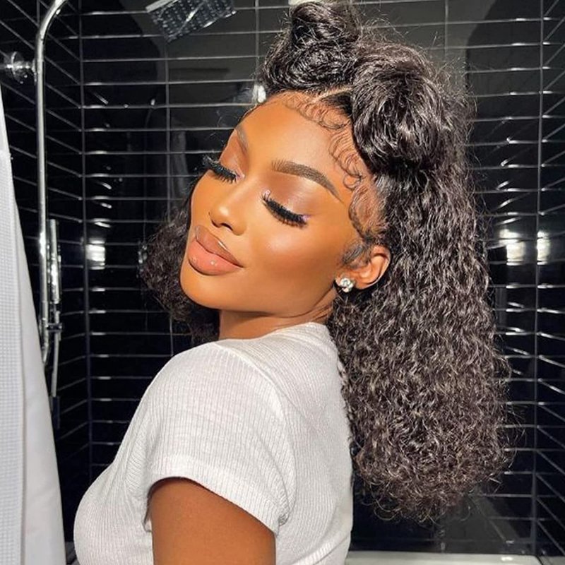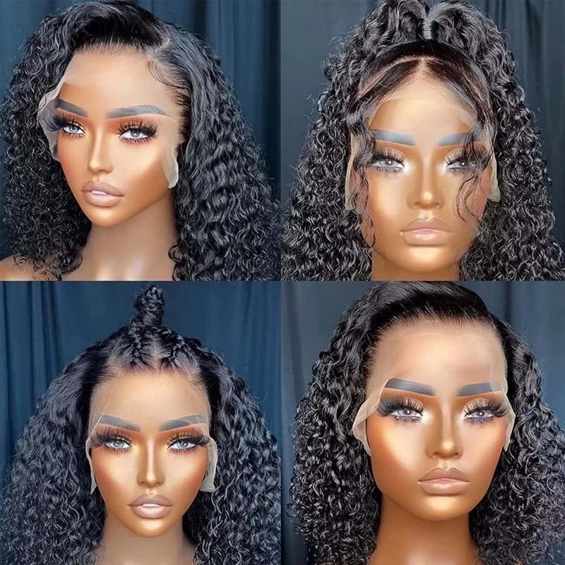 Deep Wave Lace Front Wigs Human Hair 180% Density Curly Lace Frontal Wigs Human Hair Wigs for Black Women HD Transparent Wet and Wavy Glueless Wigs Human Hair Pre Plucked with Baby Hair (14inch)