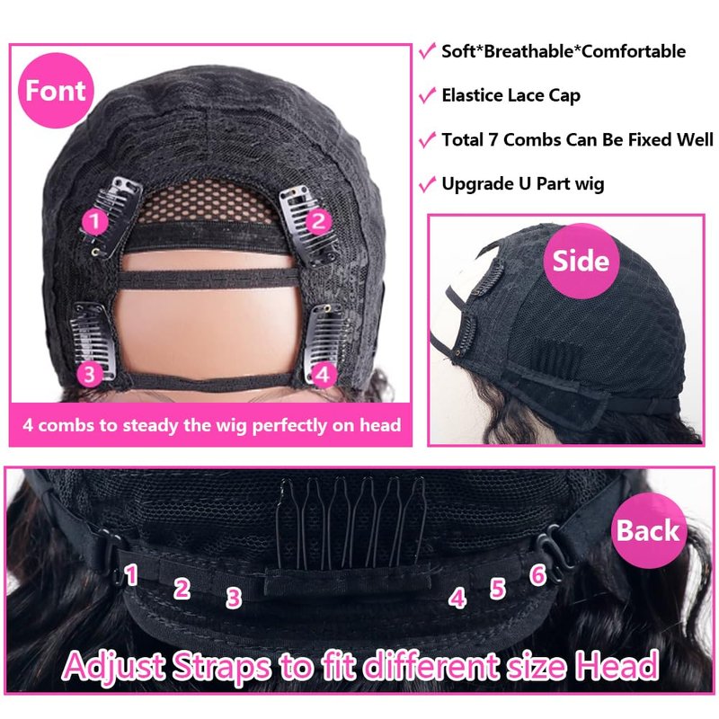 - 💟【Wig Advantage】: 2X4 inch open space U Part wig shape allows you to have more hairstyle choices, No need glue and gel, Skin-Scalp Friendly. human hair wigs easy to install and remove, 7 combs on the cap to make wigs more stable, adjustment straps to meet different head size.
