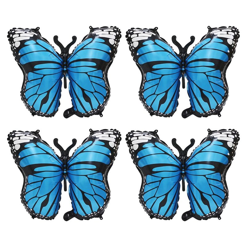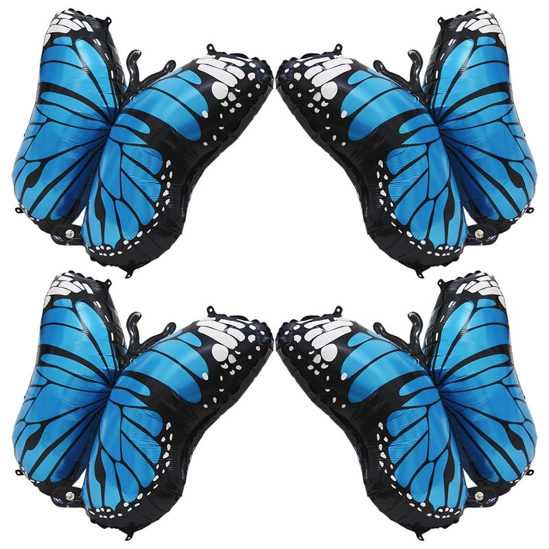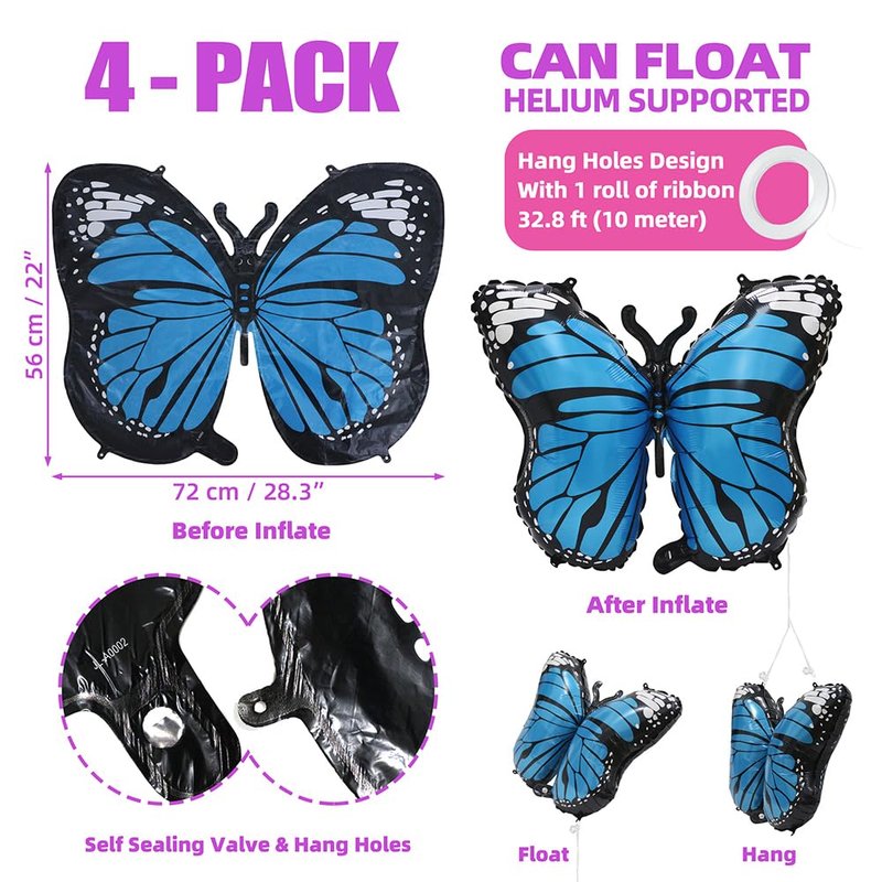 - 【ADORABLE BUTTERFLY BIRTHDAY DECORATION BALLOONS】This Pack include 4 piece blue butterfly Balloons and 1 roll of ribbon. You can create a fairy tale theme butterfly party for your princess with these beautiful butterfly foil balloons, it will light up your blue party decorations. It also makes your party attractive with this butterfly balloon decorations.