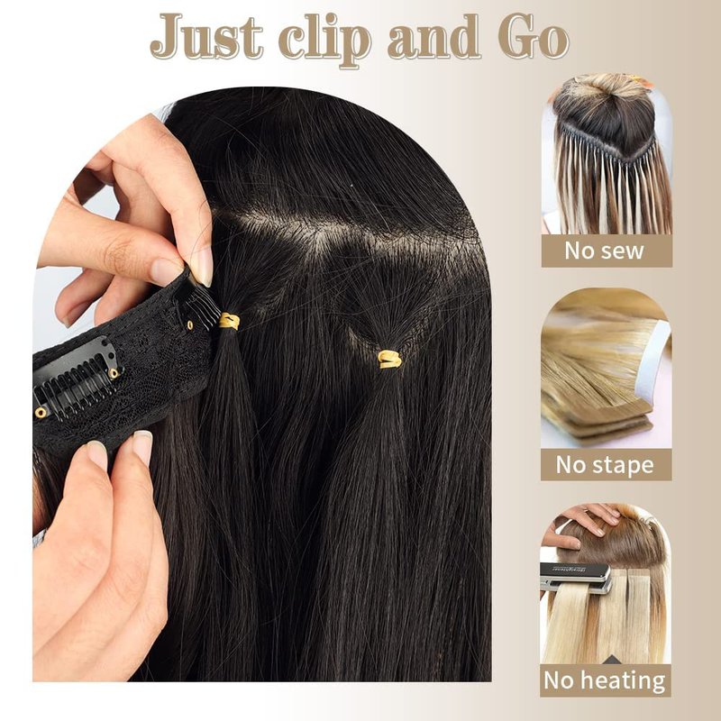 - šćEasy UsećThere is no tape, no glue, no damage to the scalp and hair.You can easily wear it by yourself.DIY also,you can decide how many pieces to wear to increase your hair volume