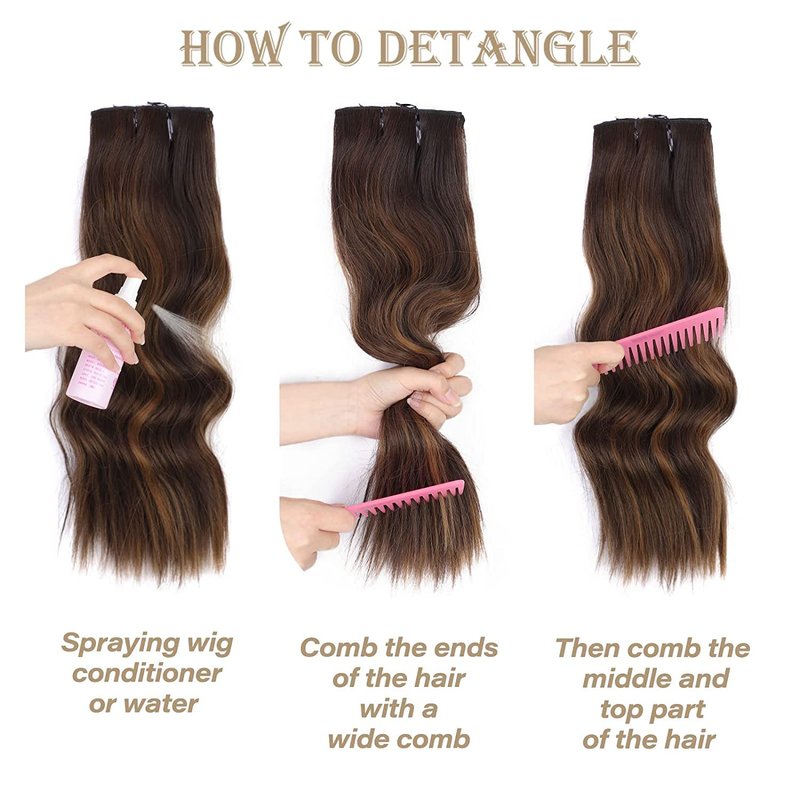 - šćMaintenance & CardingćWhen the hair is entangled,we recommended to simply comb the hair with wide tooth comb or fingers(Note: To prevent static or tangles, you can spray a small amount of professional synthetic hair care agent before use).