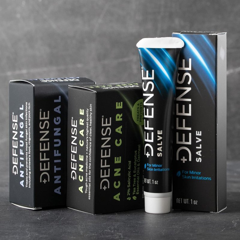 Defense Soap Products are trusted by millions of athletes because our legendary formula of essential oils repels athlete's foot fungus and other locker-room microbes. Now, Defense Acne Care builds on that legacy. We've combined our time-tested essential oils with natural oatmeal and powerful salicylic acid to clear away pimples and soothe irritated skin.