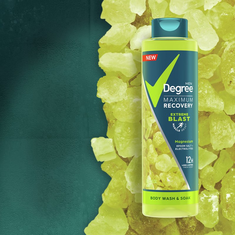 - Level-up your post-workout shower game. Degree Maximum Recovery Extreme Blast Body Wash & Soak works with the power of hot water in the shower to help boost recovery after a workout or active day
