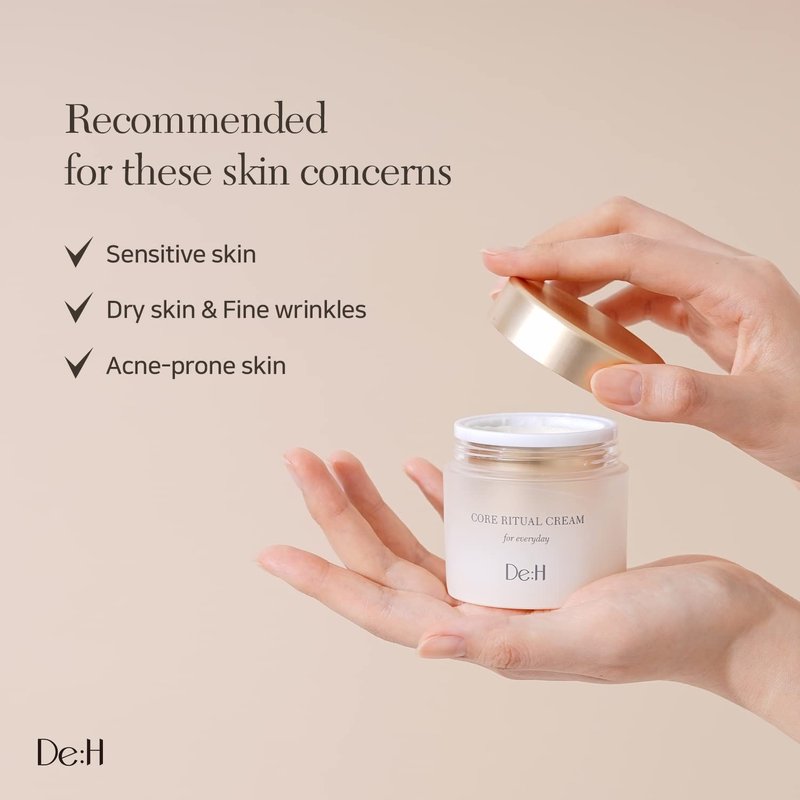 - WANT TO ENJOY BOTH SKIN HEALTH AND PAMPERING? The good vibe during skin care rituals is as important as the ingredients and function of the products. De:H core ritual cream, preppy skin care, can bring you both. LOOK AT A NICE PRODUCT, FEEL A NICE NATURAL OIL SCENT, AND EXPERIENCE THE REMARKABLE LONG-LASTING MOISTURISING AND ANTI-AGING EFFECT.