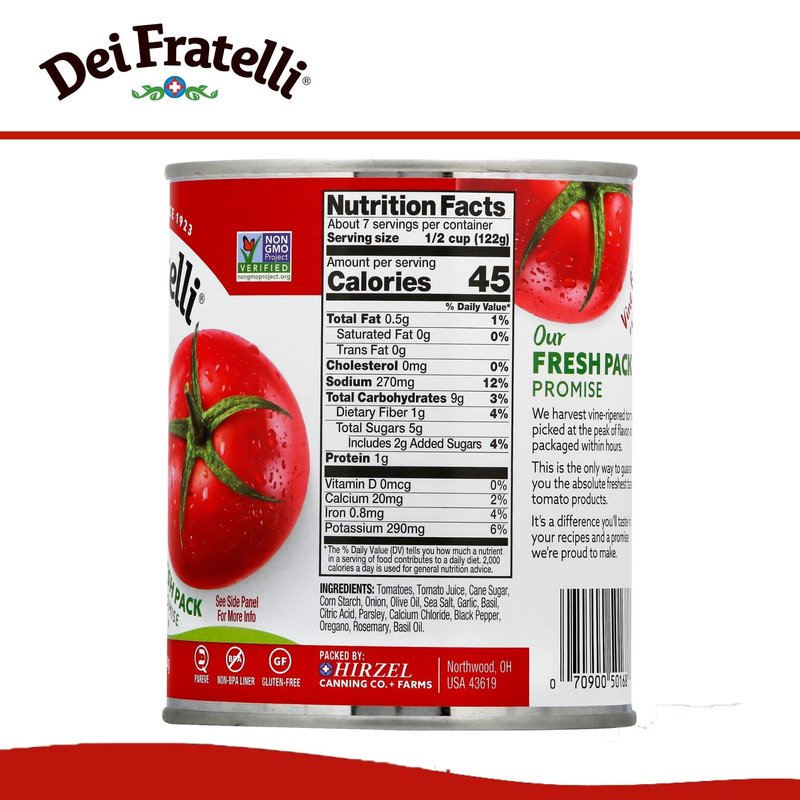 - FRESH, REAL TOMATOES. Dei Fratelli Chopped Italian Tomatoes start with vine-ripened tomatoes picked hours before packing. Using real tomatoes creates a delicious, fresh flavor for you to enjoy.