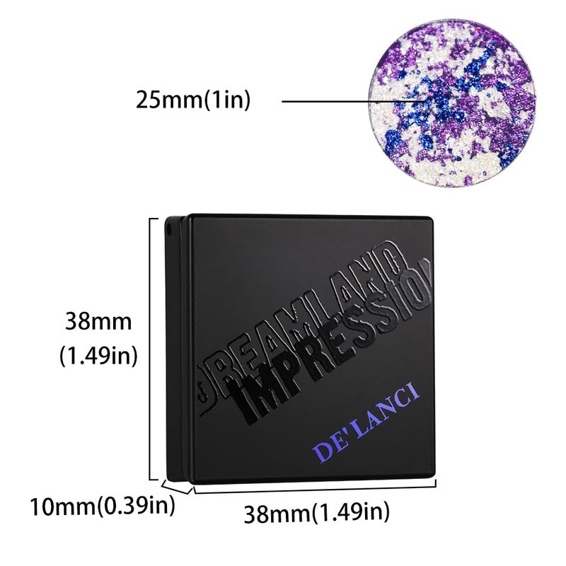 The Single duochrome Chameleon Hybrid Eyeshadow is an exquisite creation inspired by the color art of Impressionist oil paintings, offering a makeup experience that is as colorful, shiny, and magical as a dreamy world from those paintings. Meticulously crafted by blending two color-changing pigment powders, multichrome shimmery pressed powder reflects diverse colors depending on the light angle, generating a highly impactful 3D effect that is distinctive, luxurious, and rich. The pigment is exceptional – easy to apply, color smoothly, and blend effortlessly. With just a gentle stroke, Chameleon sparkle Eyeshadow provides high coverage and adheres snugly to the skin. This multi-dimensional eyeshadow is long-lasting and waterproof. Aurora eye shadow resists sweat and transfer, and doesn't come off when washed. When paired with an eyeshadow base, Gemstone eyeshadow showcases a more intense and longer-lasting color. The formula is healthy, free of talcum powder, and enriched with moisturizing and nourishing elements. This duochrome eyeshadow can be used on various parts like the face, body, nails, and hair for diverse looks. It's ideal for both daily shiny makeup and special occasion makeup such as weddings, Halloween, Christmas, and music festivals.