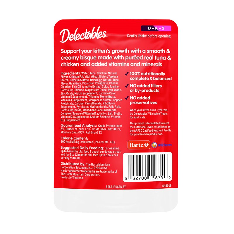 - TEXTURE VARIETY: Hartz Delectables Lickable Cat Treats are available in 6 irresistible textures in a wide variety of flavors – bisque, stew, savory broths, chowder, soft pate, and squeeze ups.