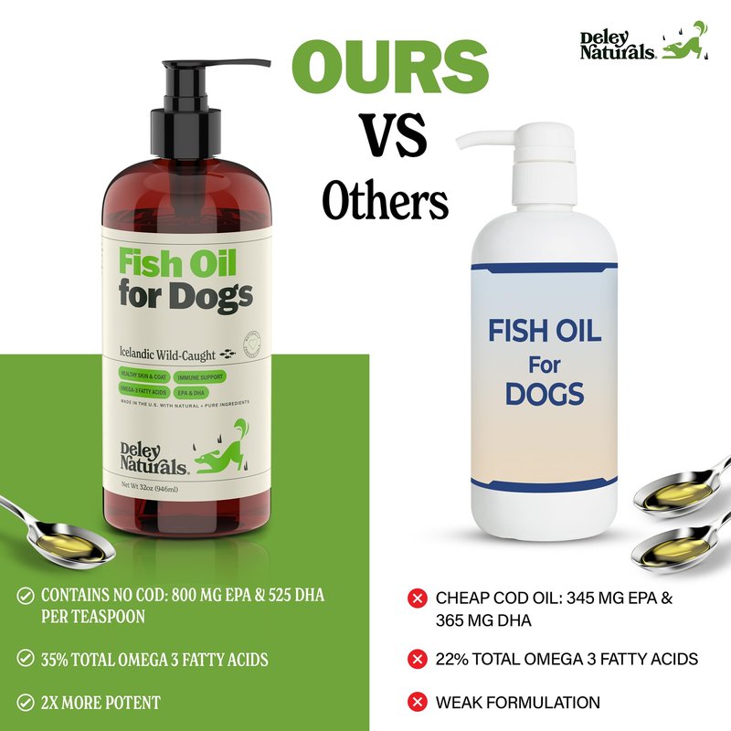 Deley Naturals Dog Fish Oil is a premium Omega 3-6-9 supplement designed for comprehensive skin and coat care. This high-quality fish oil, sourced from wild-caught North Atlantic fish, provides effective itchy skin treatment for dogs and addresses dry skin relief for dogs. Enriched with EPA and DHA, it supports overall coat defense for dogs, reduces shedding, and enhances coat luster. Our pure liquid dog skin and coat supplement ensures superior relief for skin allergies and dryness. The convenient pump top simplifies daily administration, making it an excellent choice for maintaining your dog’s skin and coat health. Manufactured in an FDA-registered facility, it meets rigorous quality standards, offering a reliable solution for dog skin allergy relief and comprehensive care.
