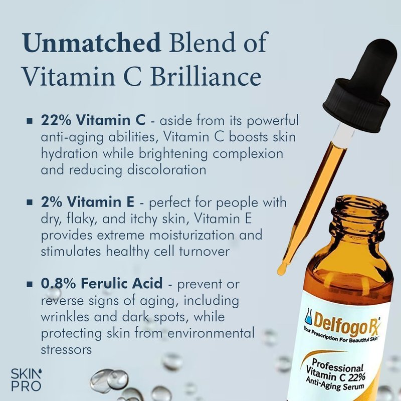 - GOOD VALUE: Our face serum comes in a travel-friendly 1-ounce bottle. Add our Delfogo RX Professional Vitamin C Face Serum to your skincare routine by applying the skin serum morning and night. Apply after cleansing and before adding moisturizer. Use it every day or as directed by your skin care professional.