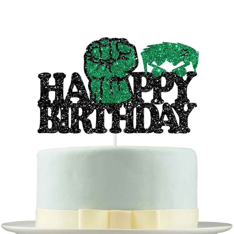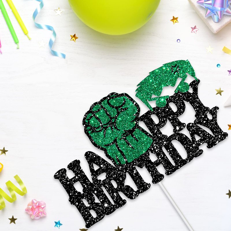 Deloklte Green Fist Happy Birthday Cake Topper, Cartoon Movie Theme Birthday Party Decoration for Kid Boys Girls, Superhero Cake Decor, Kids Birthday Party Baby Shower Supplies