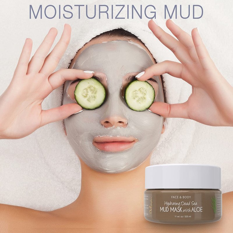 DELÚVIA Deluvia Hydrating Dead Sea Mud Mask with Aloe for Face and Body, Gentle Exfoliation, Acne Treatment (11oz)
