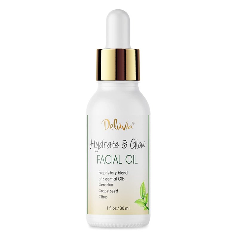 Deluvia Hydrate & Glow Facial Oil, Face Oil for Dry Skin, Sensitive Skin, Grapeseed Oil for Skin, Essential Oils for Face Care, Face Moisturizer, Skin Care by Deluvia
