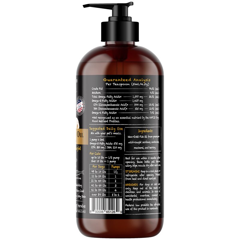 - Goes great with any meal - a tasty alternative to capsules, raw treats, or soft chews, just pump our fish oil and mix with your dog and cat food.