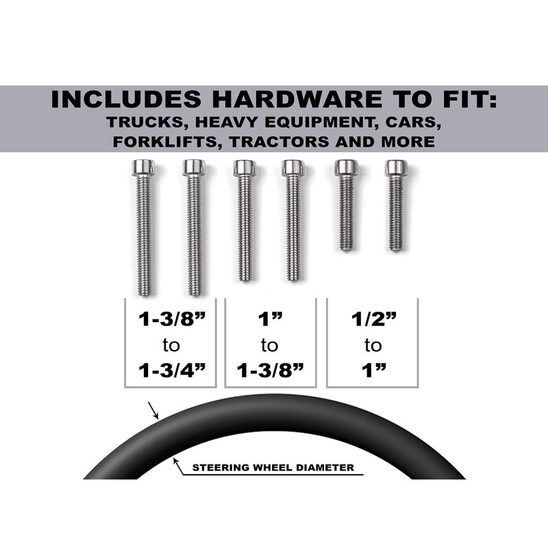 - Fits steering wheel sizes .5" - 1.75" Diameter