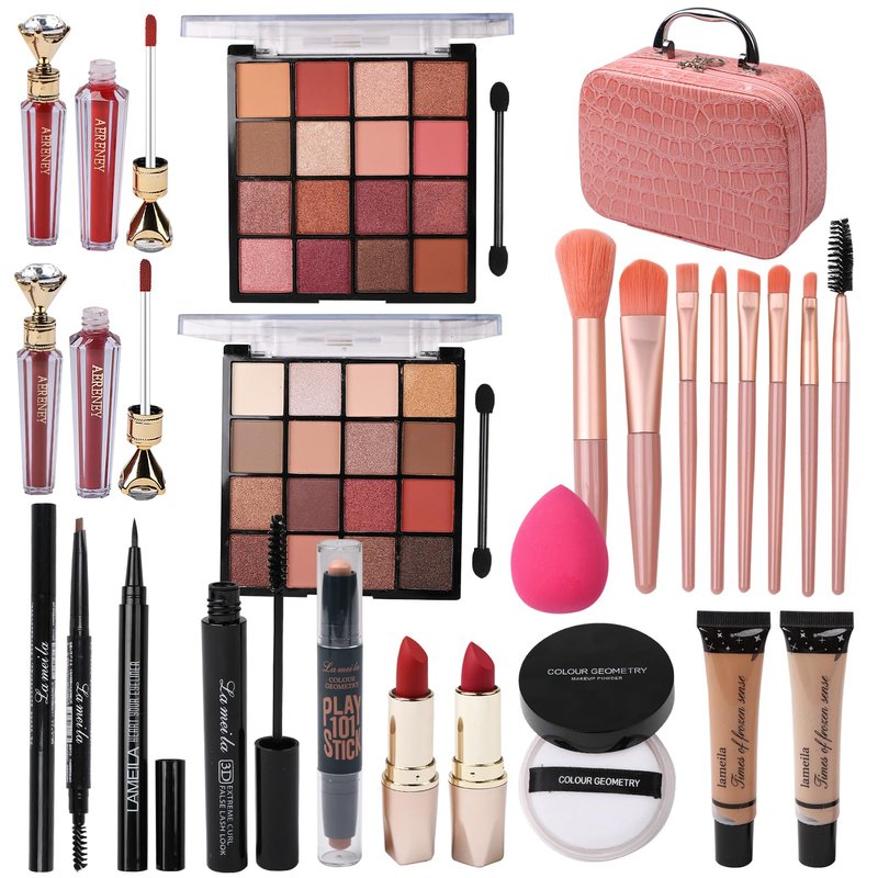 - Makeup Set is contains all the necessary and basic makeup tools that every girls need. High quality ingredients with silky shine color, easy to blend and apply, creating clear and brilliant three-dimensional face makeup finish. Suitable for a variety of skin tones.