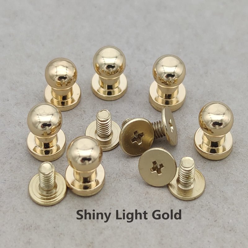 Denailey 12 Sets Solid Brass Round Head Button Stud Screw Leather Rivet Chicago Screws Button Rivets for Leather Craft Belt Wallet Handbag Repairs Decoration (Round Head Size 6mm, Shiny Light Gold)