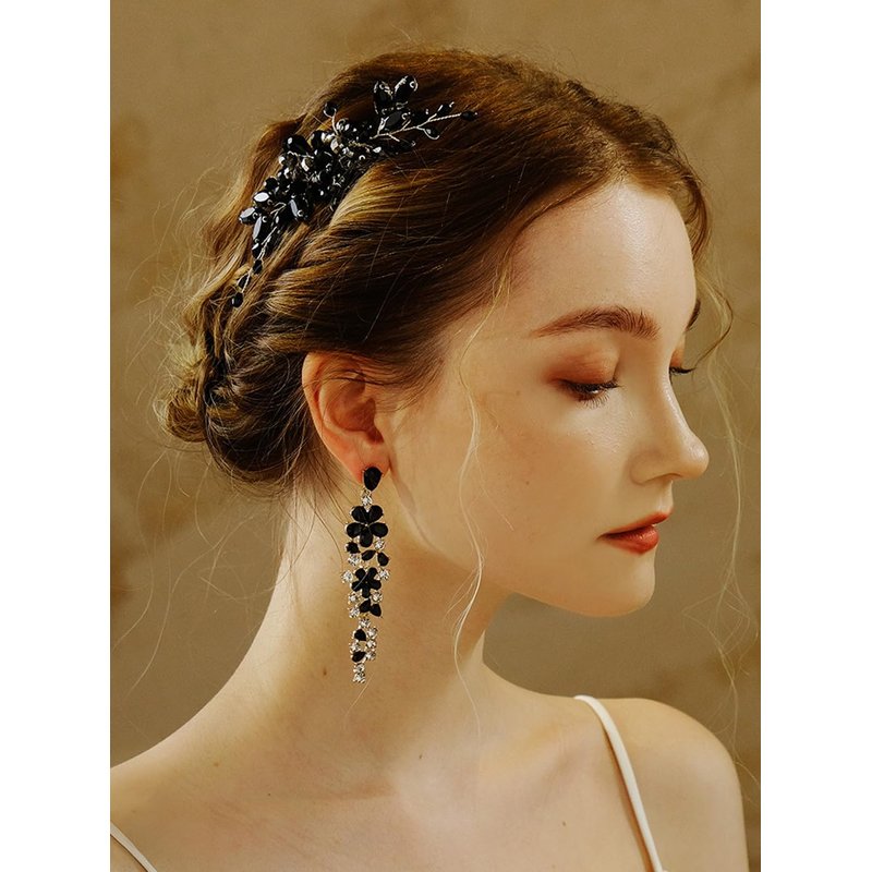 Denifery Black Teardrop Hair Comb Vintage Rhinestone Crystal Headpiece Bridal Side Combs Wedding Hair Accessories for Women and Girls