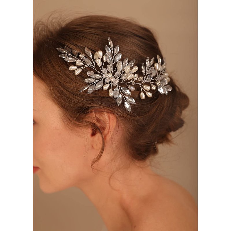 Denifery Bridal Hair Comb Bridal Hair Vine Crystals Bridal Wedding Hairpiece Wedding Hair Vine Pearl Hair Vine with Comb for Women and Girls (Style 5)