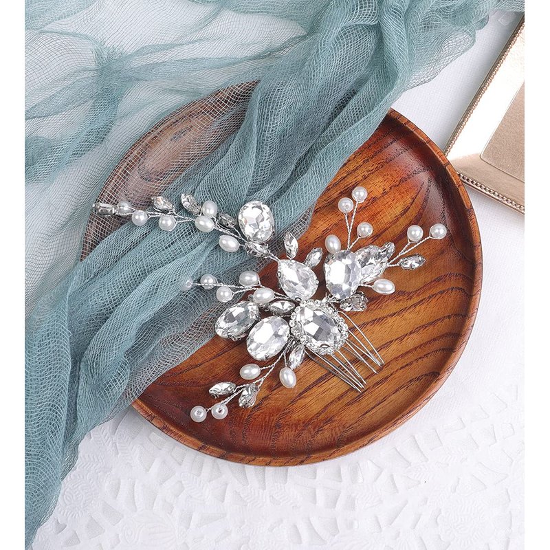 - ♥Material: high quality of alloy,pearl,rhinestones,comb and wire.