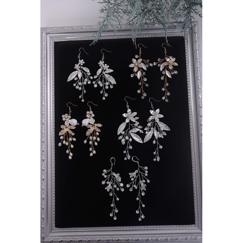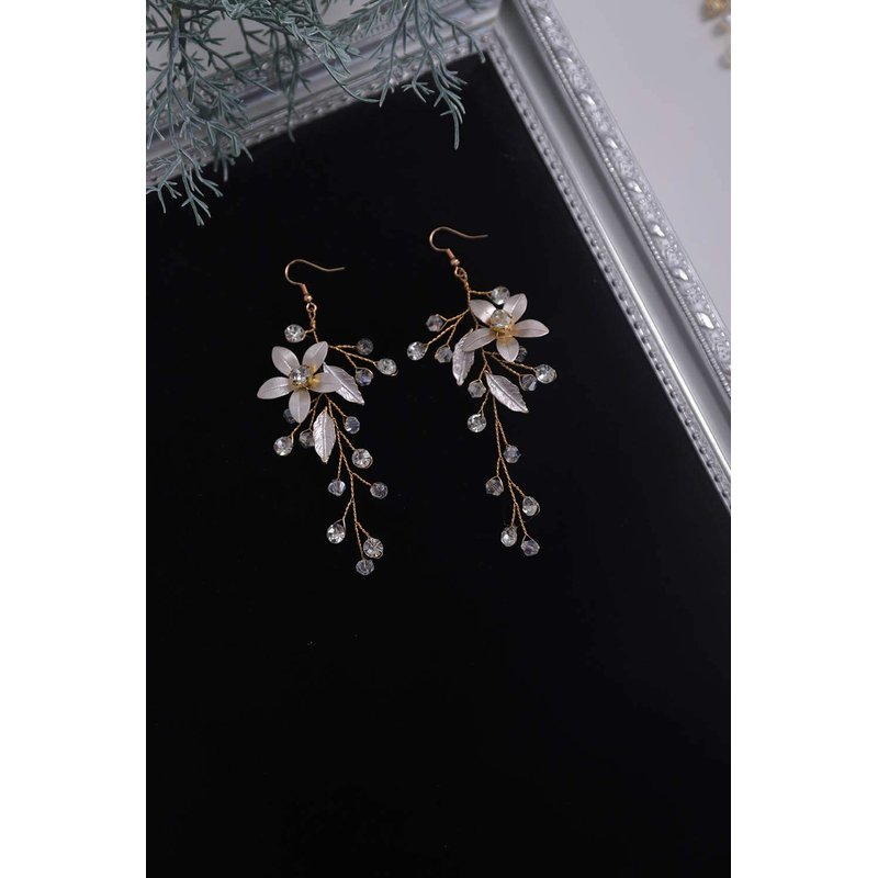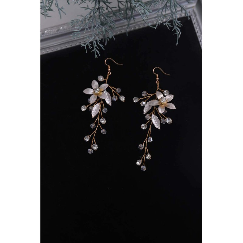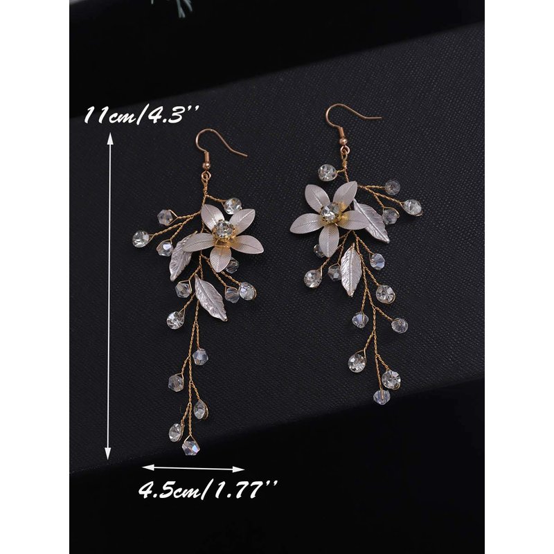 - Material: high quality of alloy,crystal,rhinestone,flower,leaf,wire and earrings hoops.