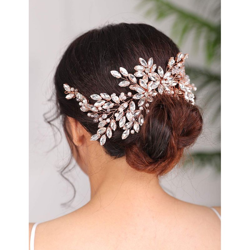 Denifery Rose Gold Bridal Hair Comb Sparkly Rhinestones Wedding Hair Comb Pearl Bridal Headpiece Rose Gold Hair Accessories for Women and Girls (Gold)