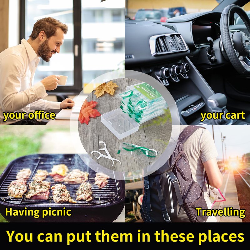 Our dental floss pick packed in a case and can close after you used. Ensure that the balance floss are hygienic. Our floss case is square and can conveniently place in your home, office, car, or picnic mat.