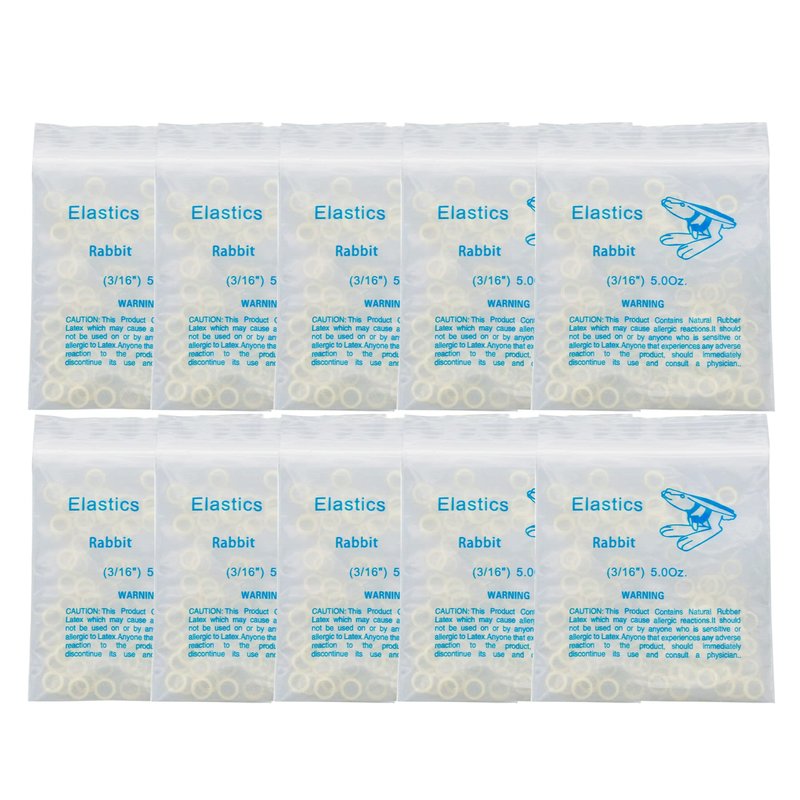 Dental Orthodontic Elastics Rubber Latex Bands Ties Braces 5.0oz Zoo Pack 10Packs 1000Pcs (Rabbit 3/16" 5.0oz)