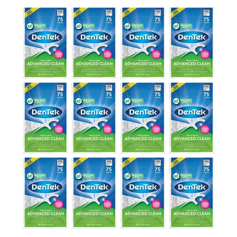 DenTek Triple Advanced Clean Mouthwash Blast Floss Picks, 75 Count, (Pack of 12)