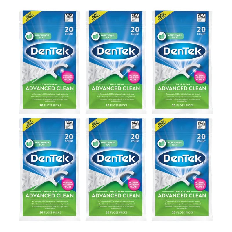 DenTek Triple Clean Advanced Clean Floss Picks, No Break & No Shred Floss, 20 Count, 6 Pack
