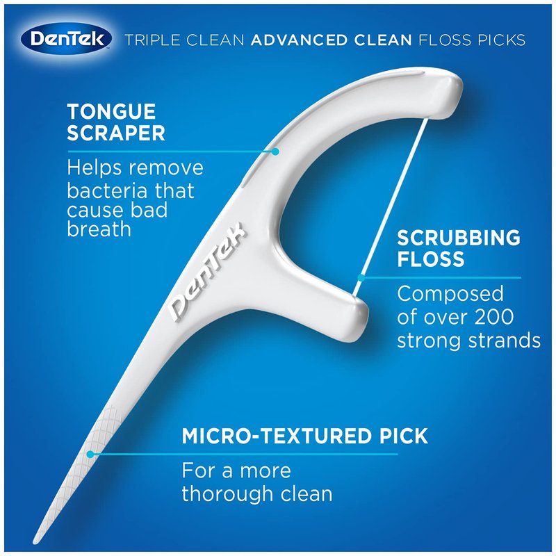 DenTek Triple Clean Advanced Clean Floss Picks, No Break & No Shred Floss, 90 Count, 6 Pack