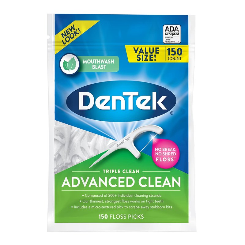 DenTek Advanced Clean Floss Picks are no shred, no break floss*. They are composed of 200+ individual scrubbing strands of floss so it scrubs with extra nooks and ridges. Our thinnest, strongest floss gets into even the tightest spaces and works on tight teeth. Includes a micro-textured pick to scrape away stubborn bits. It also includes a tongue scraper to help remove the bacteria that causes bad breath and a micro-textured pick for a more thorough clean. In addition to a great clean, you're getting an advanced pick that includes: a floss no-break guarantee*, mouthwash blast flavored floss and fluoride infused floss strands.