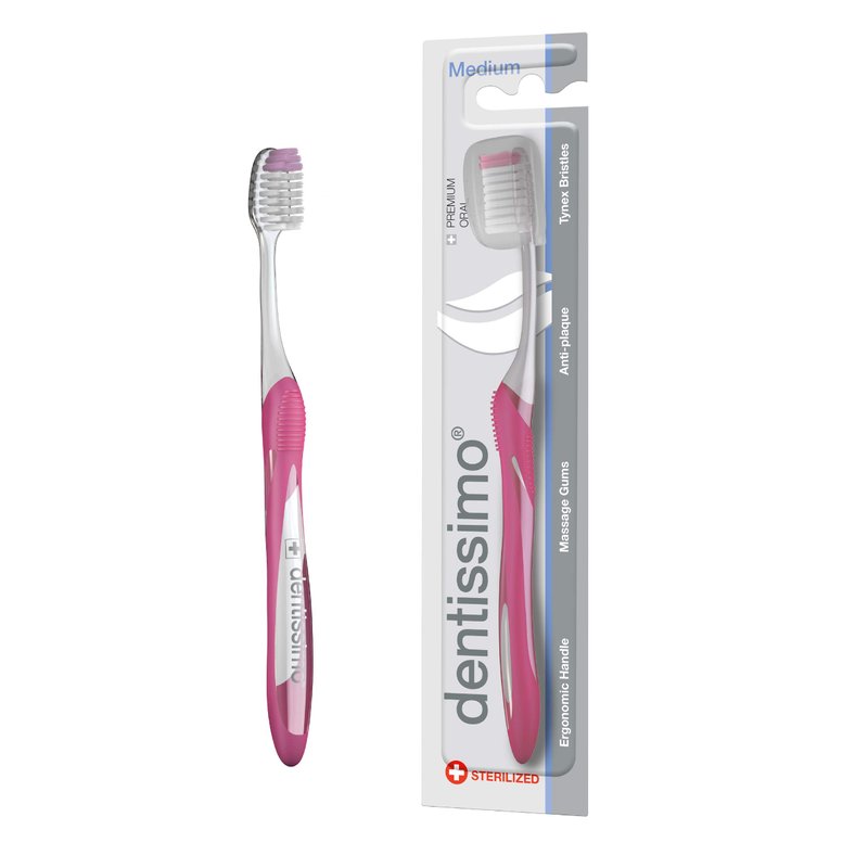 DENTISSIMO SWISS BIODENT Premium Oral Care Medium Bristle Toothbrush with Ergonomic Handle, Colors May Vary, Pack of 1