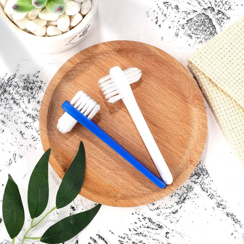 Denture Brush Dual Head Toothbrushes Hard Denture Cleaning Brush Denture Toothbrush Cleaning Brush False Teeth Brush Toothbrush for False Teeth Cleaning, 2 Colors (6 Pieces)
