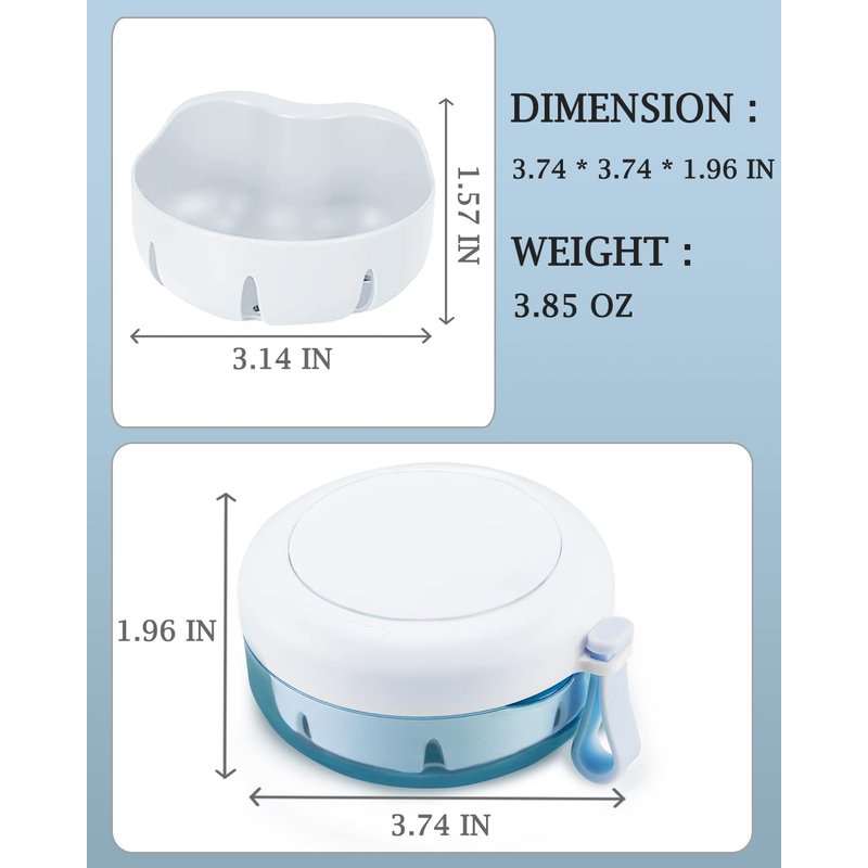 - 【USABILITY】Our denture case is easy to use for any age people. It can help clean your night guard, dentures, retainers, or mouth guards. The size of this product is 3.74 * 3.74 * 2.17 inch. Our product is not suitable for large denture.