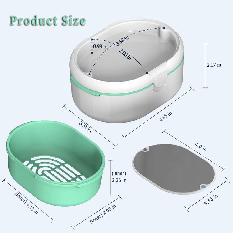 - 🟩[Easy to Clean]-✨-This denture bath is very convenient for cleaning dentures or partial dentures. Add water to the bottom layer, then put the cleaning tablet, or use soap and warm water to easily clean dentures, etc. After cleaning, you can directly lift the water filter basket to drain the water, or put It's placed on the top shelf. Very easy to clean.