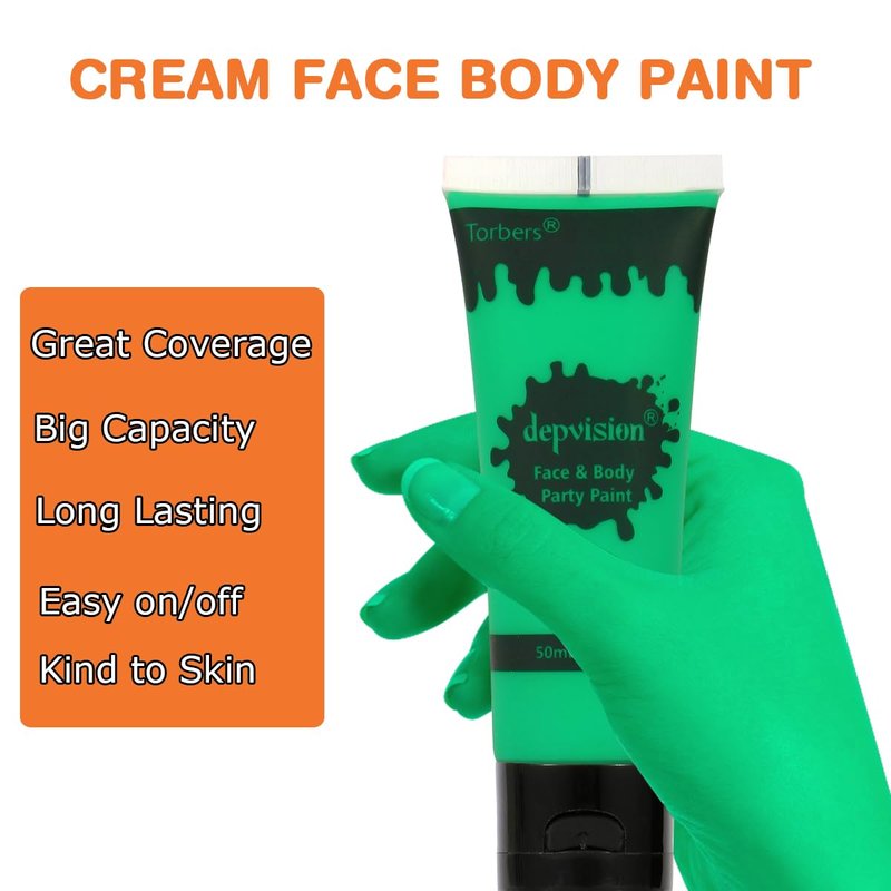 Depvision Face and Body Paint 1.7oz Cream Makeup 50ml Water Based Face Painting Special Effects For Adults Children Kids Halloween Christmas Party Stage Cosplay (Green)