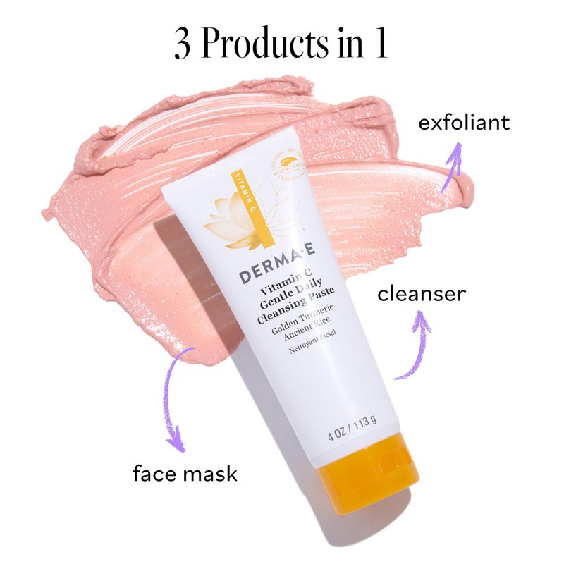 Derma E Vitamin C Gentle Daily Cleansing Paste – Vitamin C Face Mask or Cleanser with Turmeric - Facial Mask Brightens & Clarifies, 4.0 Oz