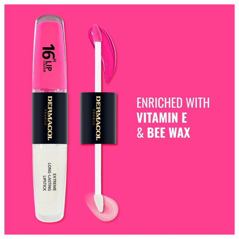 Dermacol NEW 16-Hour Lip Colour, Highly Pigmented Glossy Lip Stain, Two-Phase Lip Plumper Gloss, Kissproof Lip Makeup Products with Matte and Glitter Finish, n. 18, Cotton Candy