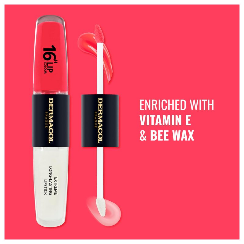 Dermacol NEW 16-Hour Lip Colour, Highly Pigmented Glossy Lip Stain, Two-Phase Lip Plumper Gloss, Kissproof Lip Makeup Products with Matte and Glitter Finish,n.2, Hot Date