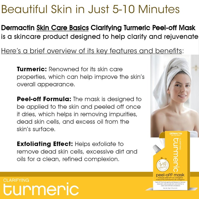 - Dermactin Skin Care Basics Clarifying Turmeric Peel-off Mask is a beauty skin treatment mask designed to help clarify, exfoliate and rejuvenate the skin.